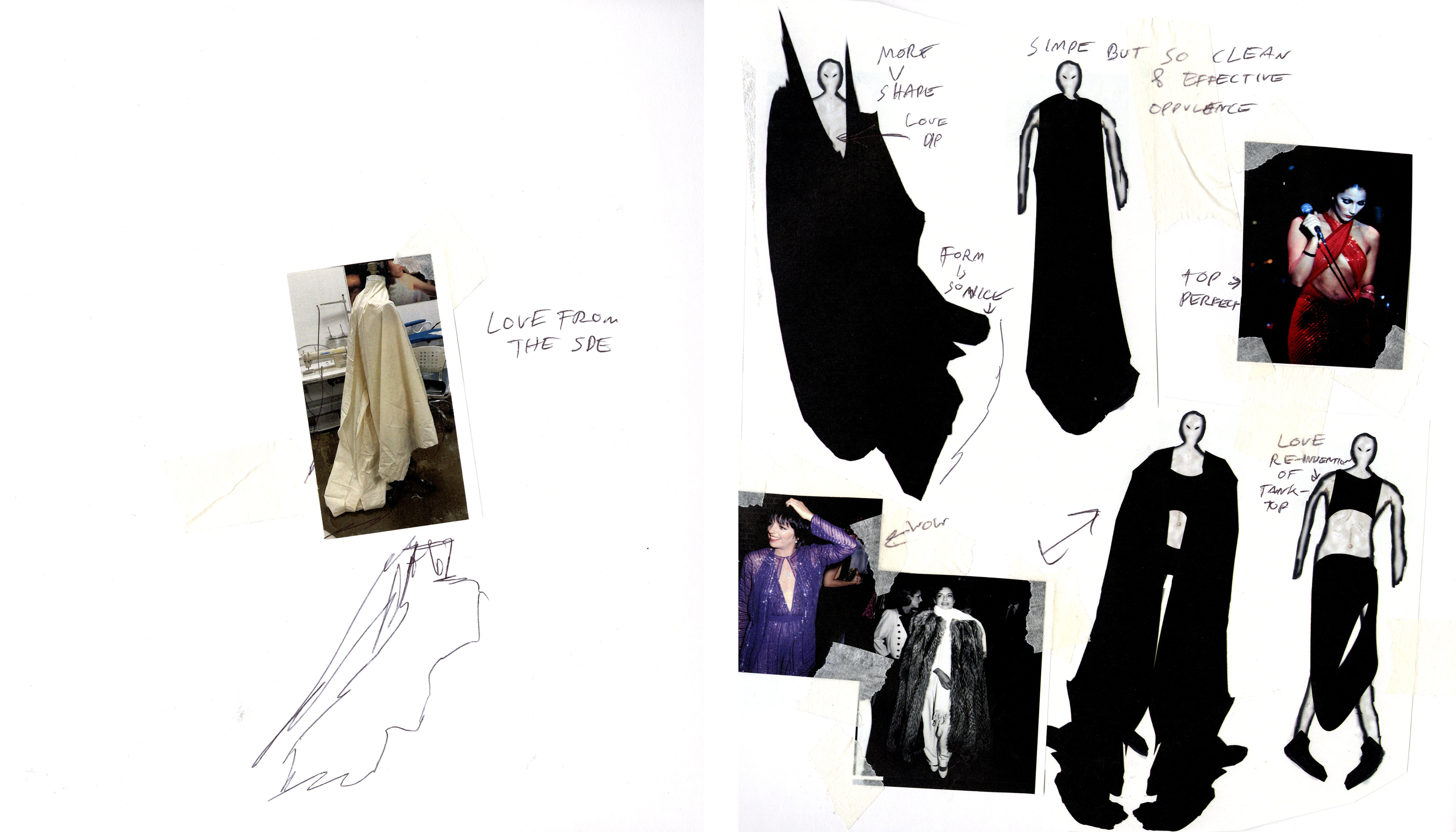 BASED ON THE PROCESS OF LOVE AT FIRST SIGHT ( IN PARTICULAR WITHIN CLUB AND RAVE SETTINGS ) THIS 8 LOOK COLLECTION LINEUP TAKES INSPIRATION FROM 70s CULTURE ( SUCH AS THAT OF STUDIO 54 ) AND MIXES THAT WITH FORMALWEAR AND CLUB WEAR . OVERSIZED BLACK GARMENTS DRAPE WEARERS IN PROTECTION AND MYSTIQUE / PERFECT FOR NIGHTS IN A CLUB / WHILE REVEALING CUTS AND SILHOUETTES CONTRAST AND SUBVERT THAT IMMEDIATELY .