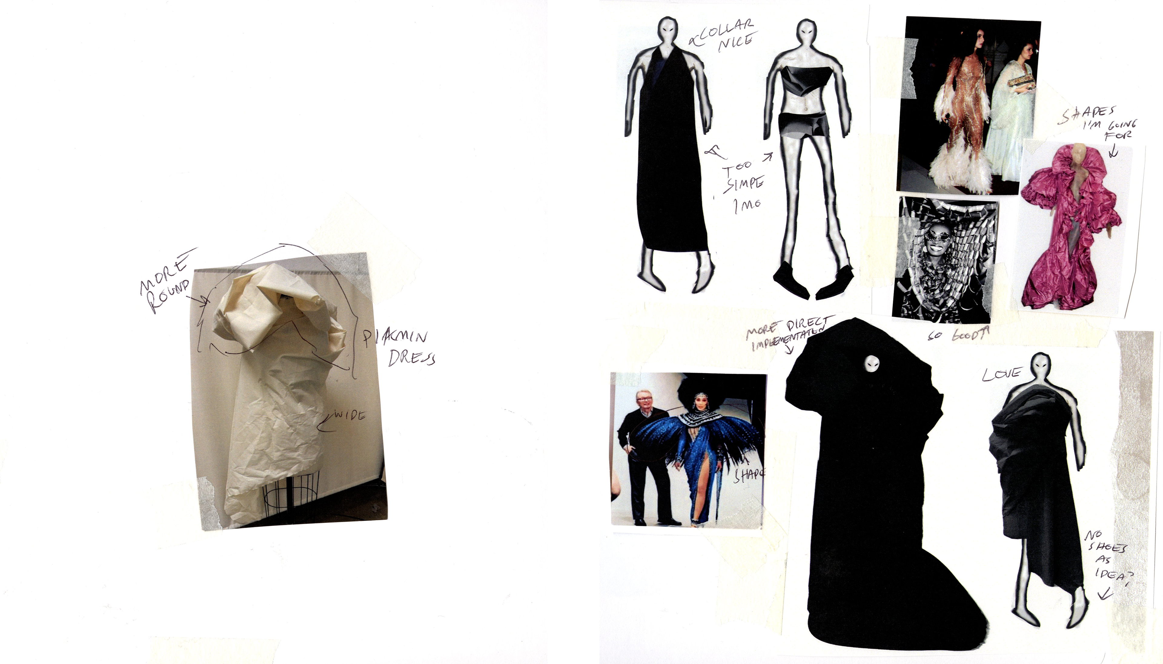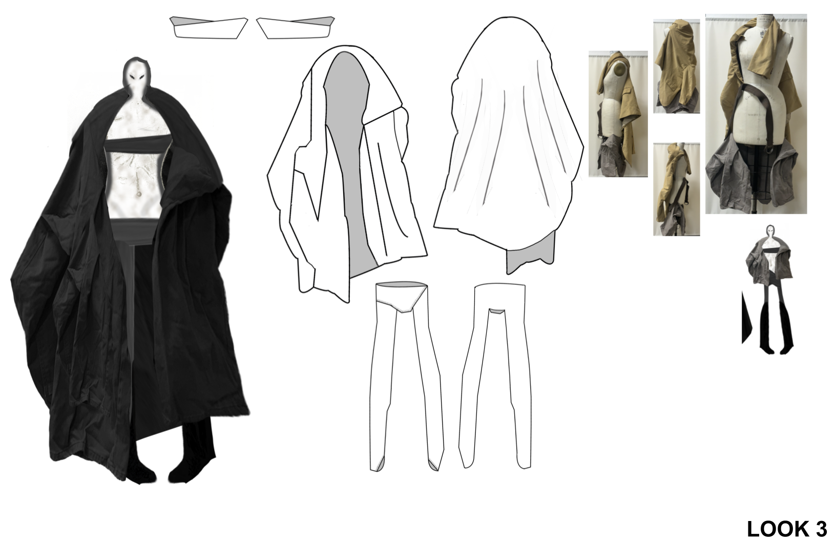 MOST LOOKS WERE CREATED BASED ON DRAPING / AND THEN DIGITALLY EDITED TO CREATE UNIQUE GARMENTS AND SILHOUETTES .