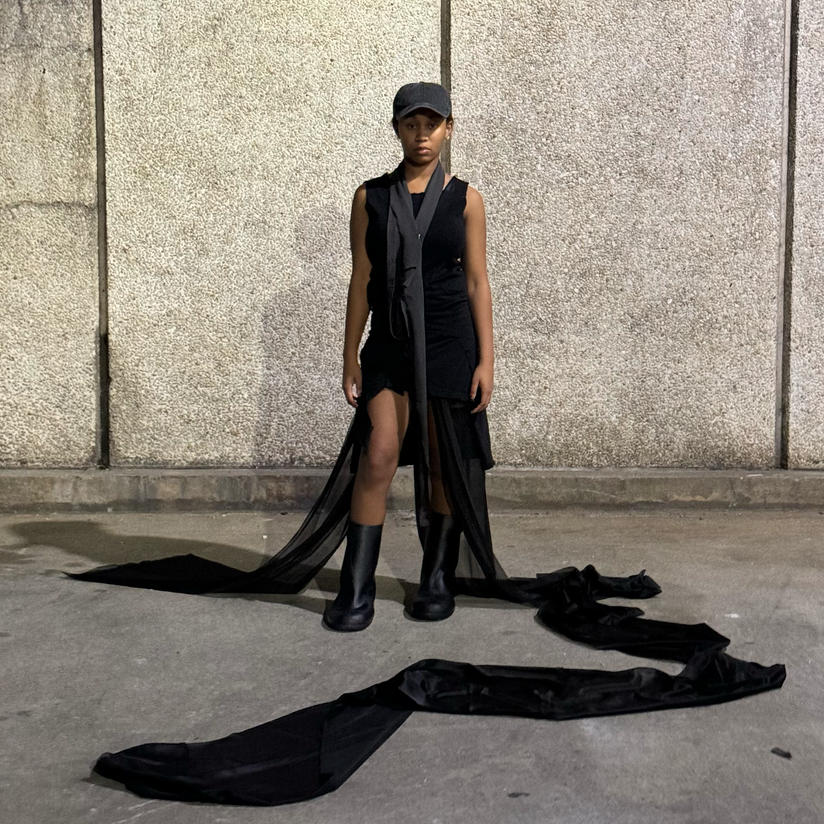 THIS COLLECTION UTILIZES AND REDEFINES THE CODES OF FORMALWEAR IN A UTILITARIAN STREET - STYLE WAY . ABOUT EXPERIENCES OF LOVE AND RELATIONSHIPS / THE TRADITIONALNESS FOUND IN FORMAL - DRESSING IS PLAYED WITH AND REEVALUATED . GRAPHIC PRINTS RE - INTRODUCE THEMES OF CONFLICT AND STREET - STYLE AND BAGGINESS AND EXCESS FABRIC IS INTRODUCED IN PANTS AND DRESSES .